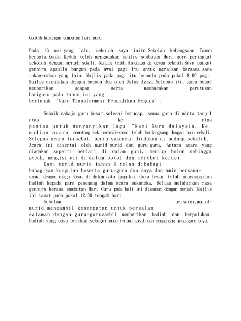 Dalam meniti arus kemodenan yang berteraskan sains dan teknologi maklumat faktor kesihatan masyarakat pada hari ini berada pada tahap yang membimbangkan pihak berkuasa. Guru-guru juga boleh menerapkan semangat patriotik semasa mengajar dalam subjek seperti-Sejarah secara umumnya sejarah tanah melayu dalam proses mencapai kemerdekaan. Kemudian nilaikan dan tetapkan peringkat karangan berdasarkan kriteria penskoran.